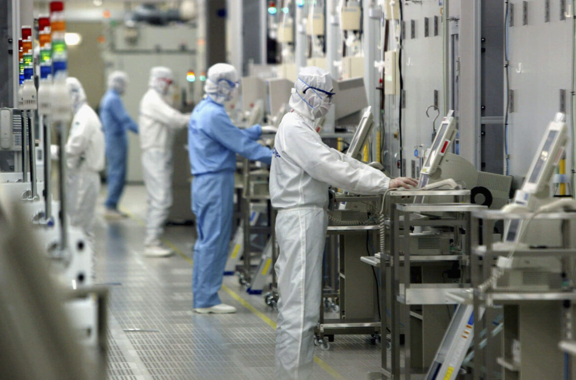 IBARAKI, JAPAN – JUNE 17: Technicians at work in the clean room of the Fab Equipment at a semiconductor company, Renesas Technology Corp. on June 17, 2004 in Ibaraki, Japan. Renesas is the first company to produce semiconductor products from 300mm wafer in the world. (Photo by Koichi Kamoshida/Getty Images)