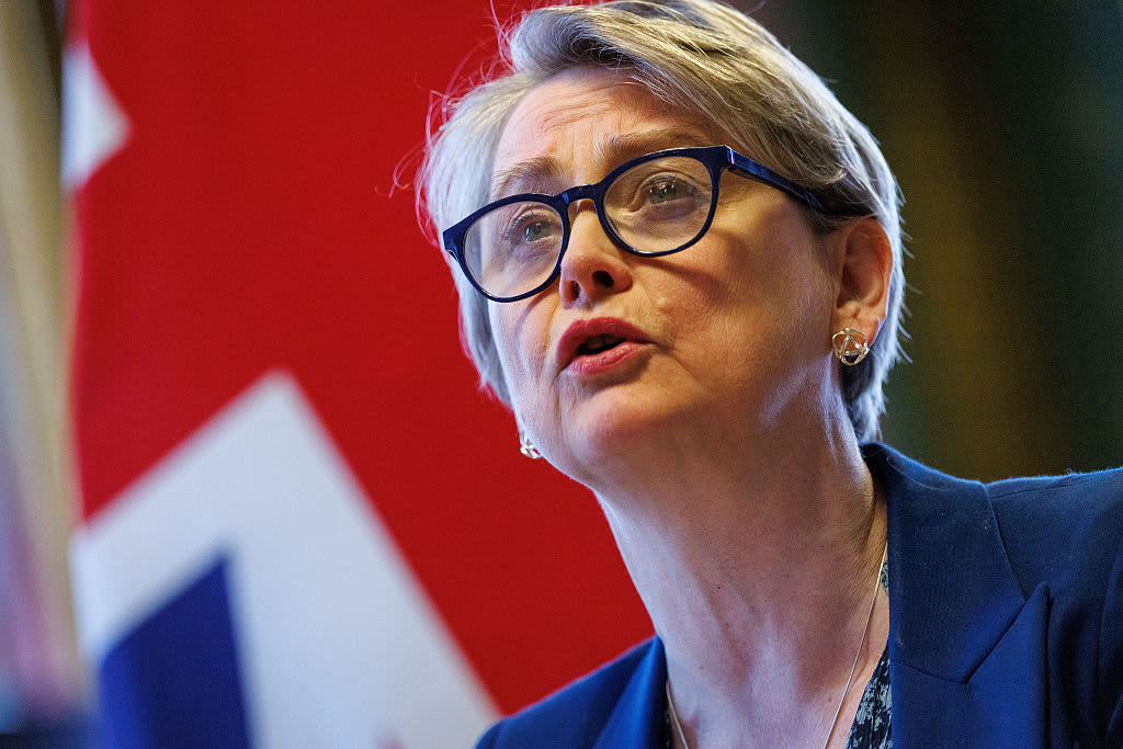 Yvette Cooper, UK foreign secretary, delivers the opening remarks as she chairs a virtual meeting to discuss the re-opening of the Strait of Hormuz, in London, UK, on Thursday, April 2, 2026.